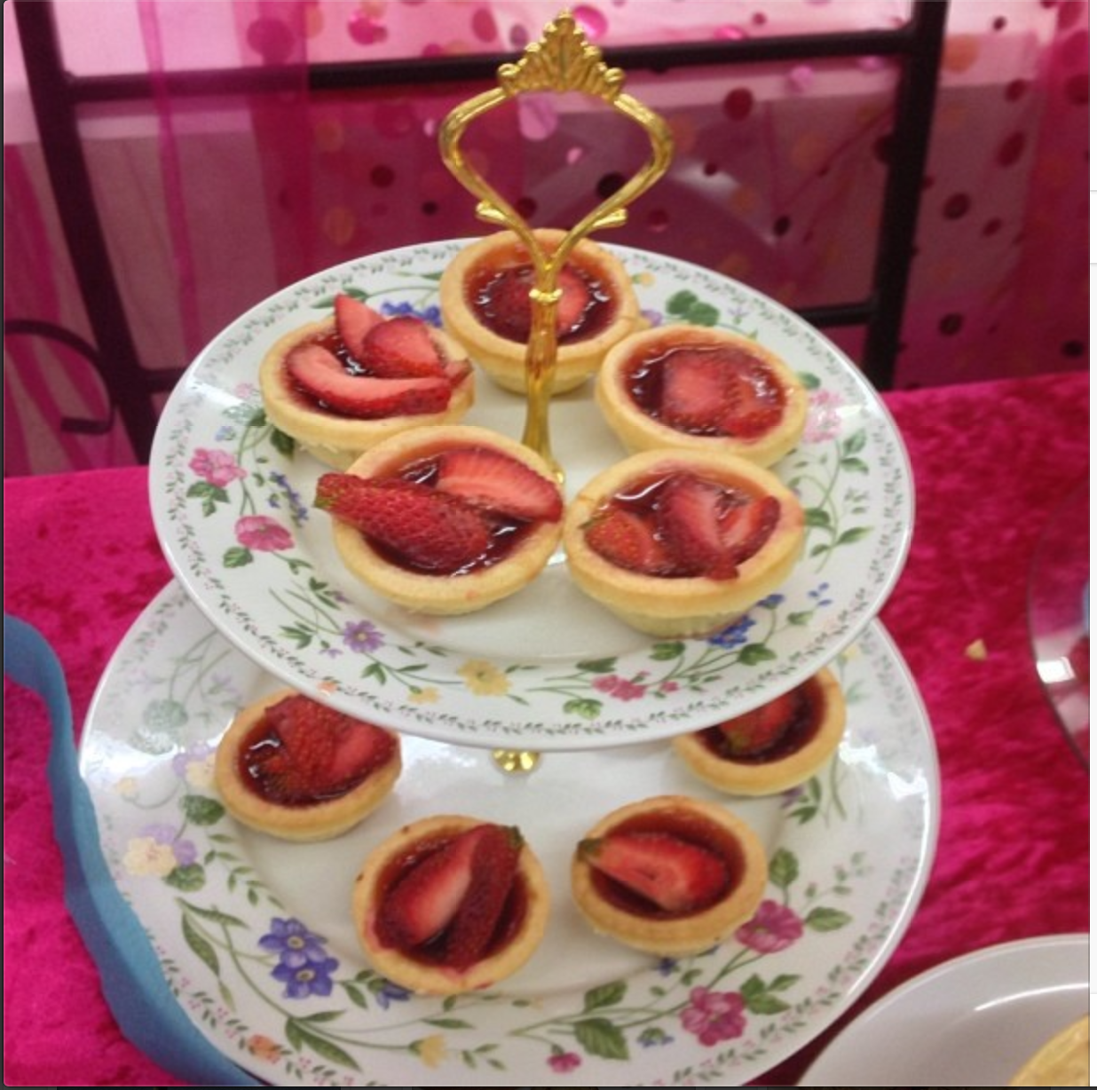 | [ Macadamia tarts, rockmelon and orange, strawberry tarts ] |